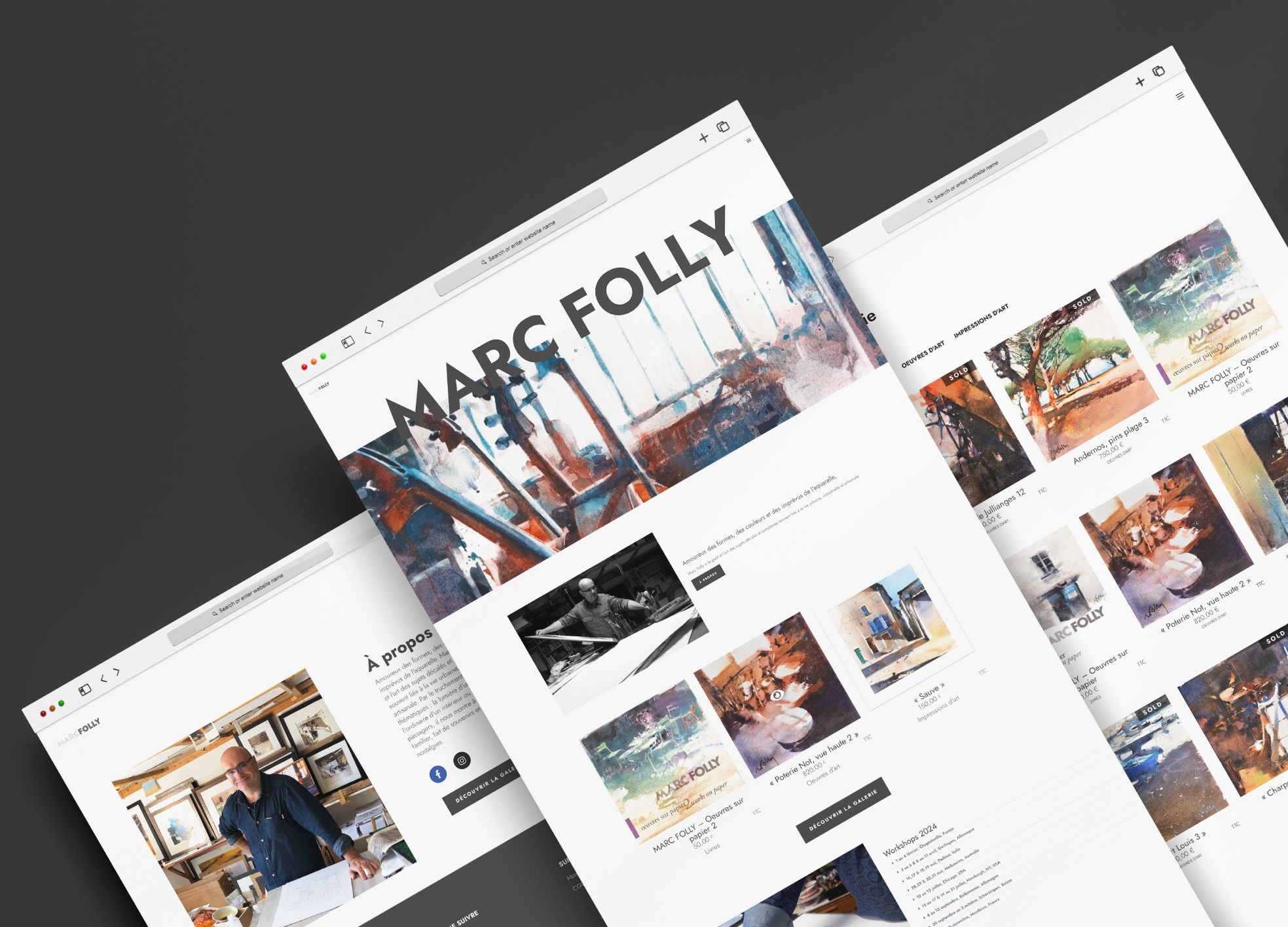 Marc Folly, aquarelliste reconnu, expose ses œuvres et anime des ateliers à l’international depuis des années. Son univers, mêlant couleurs, formes et thèmes urbains, industriels et artisanaux, attirait déjà un public fidèle, mais il ressentait le besoin d’élargir sa notoriété et de toucher de nouveaux amateurs d’art. Comme beaucoup de créateurs, Marc manquait de temps pour gérer seul sa communication digitale.
